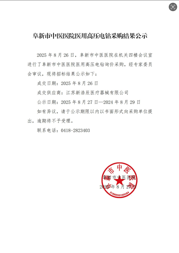 博鱼平台_博鱼(中国)一站式服务平台,医用高压电钻采购结果公示